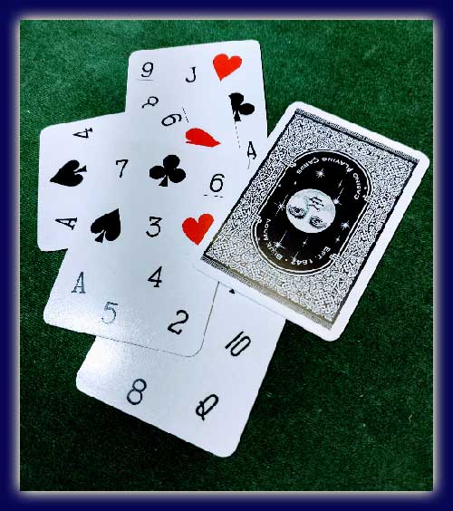 Sobald der Zuschauer seine geheime Wahl getroffen hat, stellen Sie  ihm das dünnste Kartenspiel der Welt, bestehend aus lediglich sechs Karten, vor. Auf einigen dieser Karten befinden sich nur ein paar Kartenwerte, auf anderen die Kartenfarben.