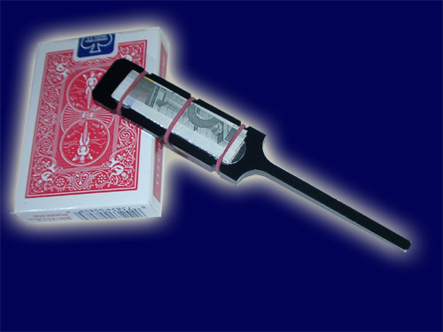 Dann schnipsen Sie mit den Fingern und unter den drei Gummibändern ist sichtbar ein Geldschein erschienen, den Sie rausnehmen und auffalten. Dabei wird das ZZ-Logo sichtbar und Ihnen wird klar, dass man bei der ZZM wirklich sparen kann, denn nur Qualität ist preiswert!