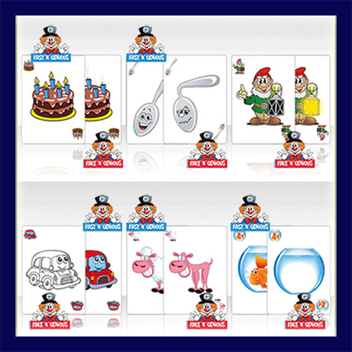 Each of the 55 cards in these two decks have a unique full color illustration. Missing from this deck are numbers and standard pips (Spade, Heart, Diamond and Club), this allows you to perform all the classic card routines for kids. These decks have worldwide appeal since they have no printed words on the cards. The high quality and funny illustrations combined with your imagination will allow you to produce countless stories for your favorite routines.