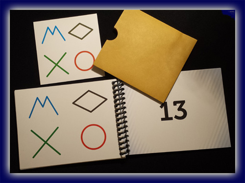 Dabei nehmen Sie das Kuvert zur Hand. In ihm befindet sich eine einzige Karte auf der haargenau die gleichen Symbole zu sehen sind, wie sie sich auf der Seite mit der 13 befinden. Bingo.